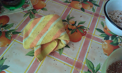 На половину полотенца насыпается большая горсть жаренного арахиса,